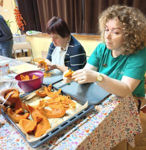 W każdą środę w Środowiskowym Domu Samopomocy mamy zajęcia integracyjne. Wczorajszym tematem przewodnim była dynia – jesienny owoc sezonowy, pyszny w rożnych odsłonach. Dynię widział każdy, ale nie każdy jadł sernik dyniowy. Nam się udało … 😊 Zapoznaliśmy się z przepisem i wspólnie wzięliśmy udział w przygotowaniu sernika, pieczeniu i degustacji… 😊